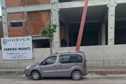 Bursa'da inşaattan düşen demir otomobile ok gibi saplandı