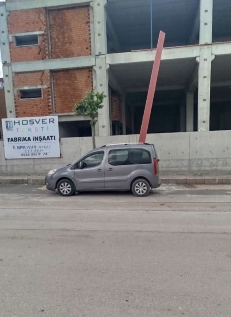 Bursa'nın Kestel ilçesinde inşaattan düşen demir, park halindeki otomobile saplandı.