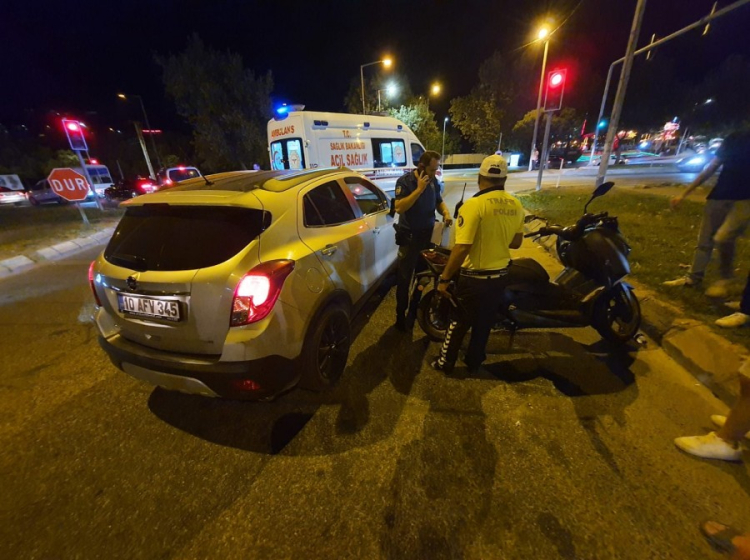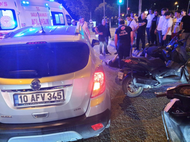 Alınan bilgilere göre Yeniköy istikametinden şehir merkezine doğru gitmek için kırmızı ışık yanmasına rağmen kavşağa giren 23 yaşındaki Ahmet S.'nin kullandığı 41 AGV 907 plakalı motosiklet ile kavşak içinden dönüş yapan 57 yaşındaki Ali Osman D.'nin kullandığı 10 AFV 345 plakalı otomobil çarpıştı.