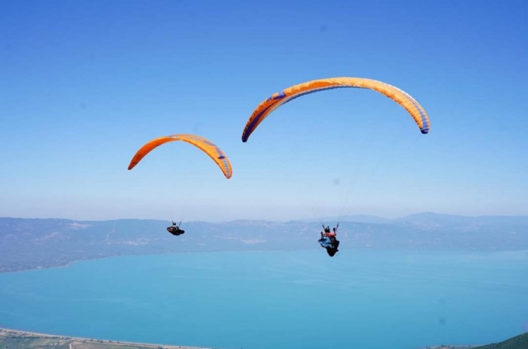 Bursa'da İznik Gölü'nde yamaç paraşütü
