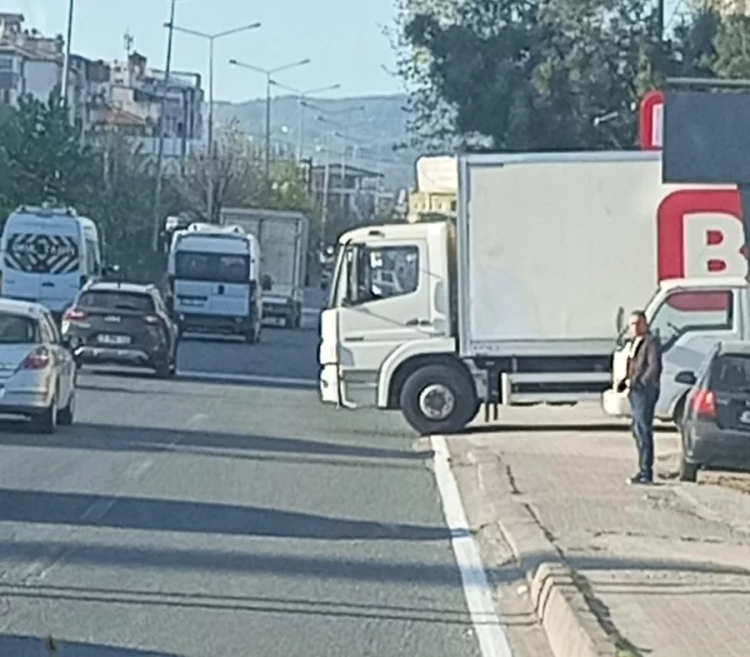 Bursa'nın Orhangazi ilçesinde, bir zincir markete ürün getiren kamyonun ana yolda bir şeridi kapatarak park etmesi trafiği tehlikeye düşürdü. Hiçbir güvenlik önlemi alınmadan kamyonu bırakıp giden sürücü kazaya davetiye çıkarırken, tehlike atlatan diğer araç sürücüleri duruma tepki gösterdi.