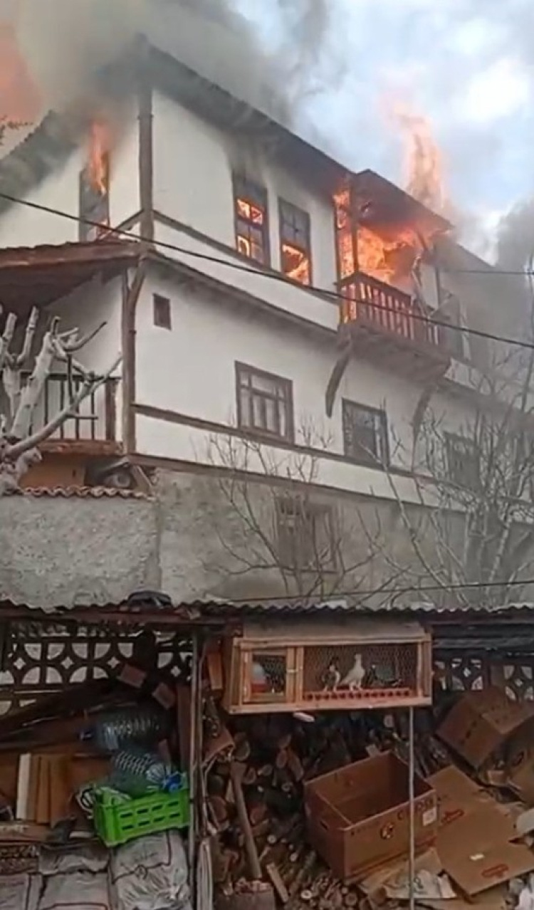 Ömerli Mahallesi'nde İhsan Özdemir'e (65) ait 2 katlı kerpiç evde saat 16.30 sıralarında baca temizliği sırasında yangın çıktı. Bacada başlayan yangında alevler kısa sürede tüm evi sardı, dumanlar ilçenin birçok noktasından görüldü. İhsan Özdemir, komşularının yardımıyla evden çıkarken, mahallede yangın nedeniyle yaşanan panik cep telefonu kamerasına yansıdı.