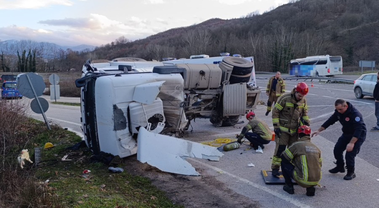Kaza, saat 17.30 sıralarında Bursa-Ankara karayolu üzeri kırsal Yeniköy mahallesi mevkiinde meydana geldi. Bozüyük'ten İnegöl'e seyir halinde olan Mehmet G. (65) yönetimindeki 16 AGK 90 plakalı beton tankeri, virajda sürücüsünün kontrolünden çıkarak devrildi. Tanker kısmı refüje fırlarken, çekici kısmı ise yolun diğer kısmına devrildi. Sürücü araçta sıkışarak ağır yaralandı. Kaza yerine 112, jandarma, trafik ekipleri ve itfaiye arama kurtarma ekipleri sevk edildi. Araçta sıkışan sürücü ekiplerce çıkarıldı. Yaralı, ambulansla İnegöl Devlet Hastanesine kaldırıldı. Yaralının sağlık durumunun ciddiyetini koruduğu öğrenildi.