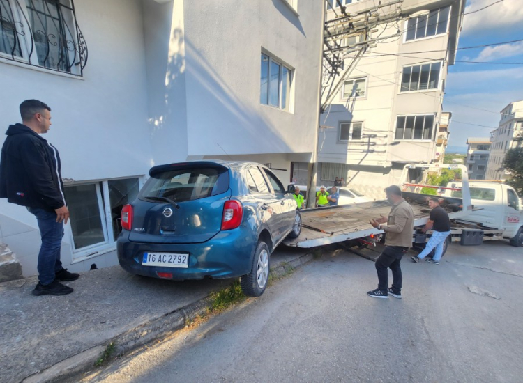 Bursa'nın Orhangazi ilçesinde meydana gelen olayda, dik yokuştan çıkmaya çalışan bir otomobil, kayınca kontrolden çıktı ve bir evin duvarına çarptı. Kazada şans eseri yaralanan olmazken, araçta ve evin duvarında maddi hasar meydana geldi.