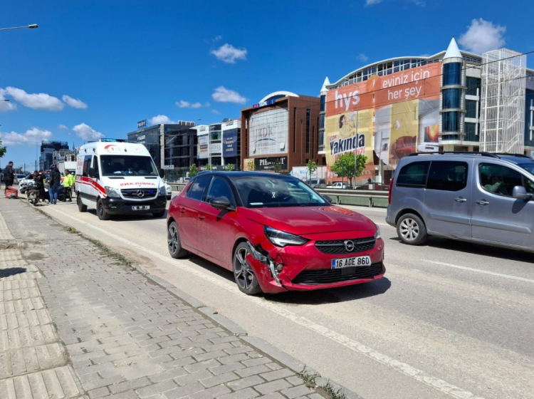 Bursa'nın Nilüfer ilçesinde anayola çıkarken dengesini kaybeden motosiklet sürücüsü seyir halinde ilerleyen aracın önüne düştü.