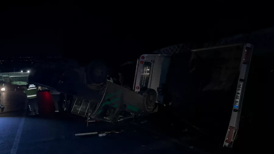 Bursa'da korkutan kaza! Çekici devrildi, üzerindeki kamyonet yola savruldu...