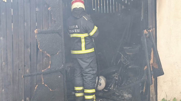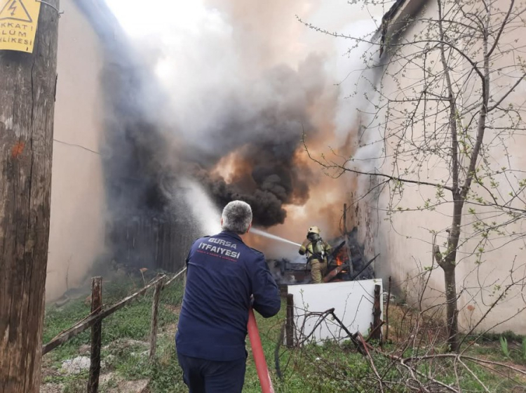 Bursa İnegöl'de meydana gelen olayda, deprem konutları içinde bulunan bir kömürlük çıkan yangın sonucu kullanılamaz hale geldi.