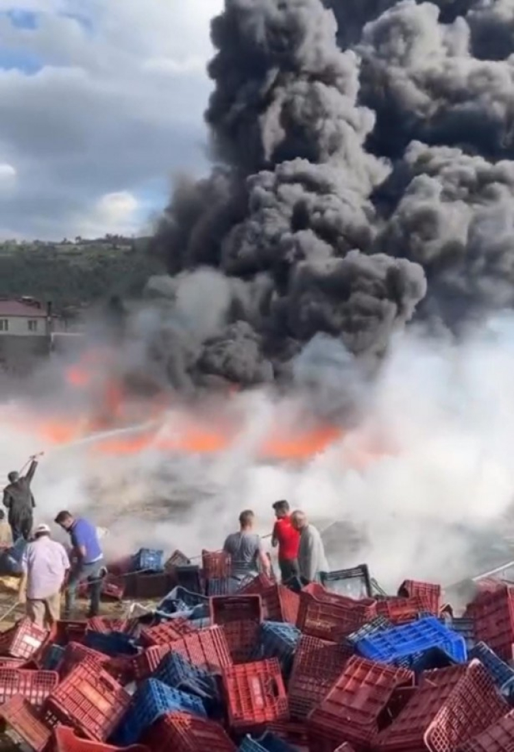 Bursa'da korkutan yangın! Plastik kasalar alev alev yandı