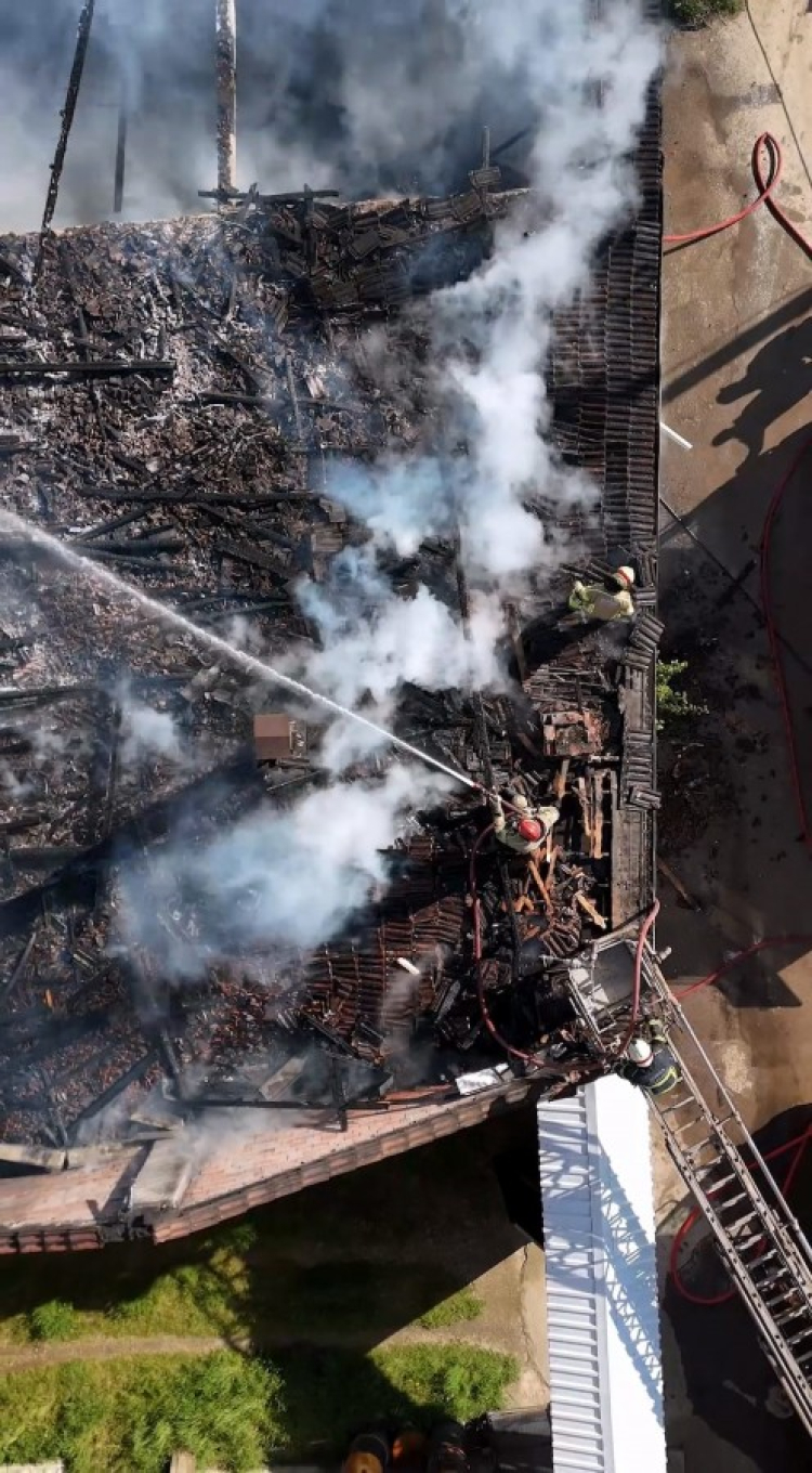 Bursa'nın İnegöl ilçesinde tek katlı ev alev alev yandı. Yangın ve söndürme anları havadan görüntülendi.