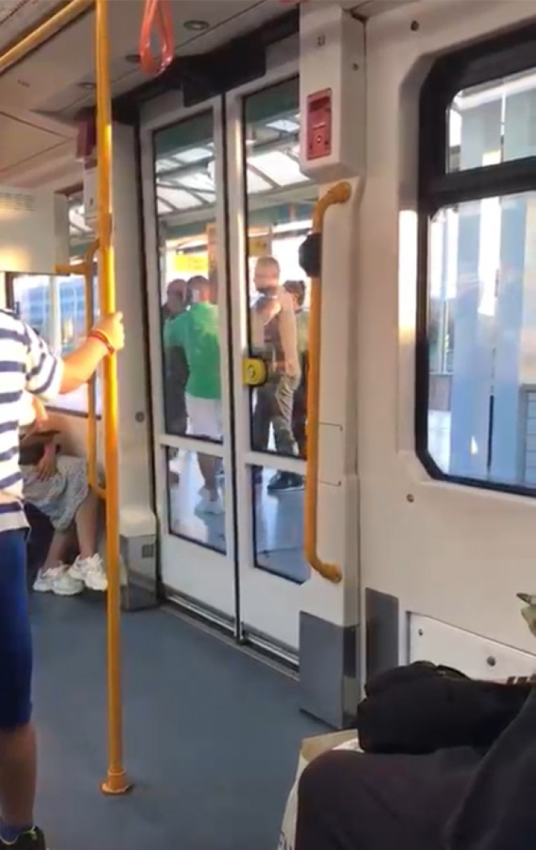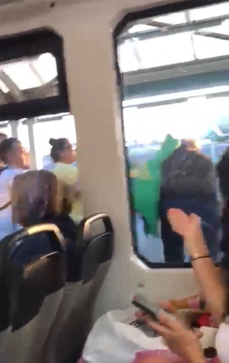 Bursa metrosunda yolcular arasında 'yer verme' kavgası cep telefon kamerasına yansıdı.