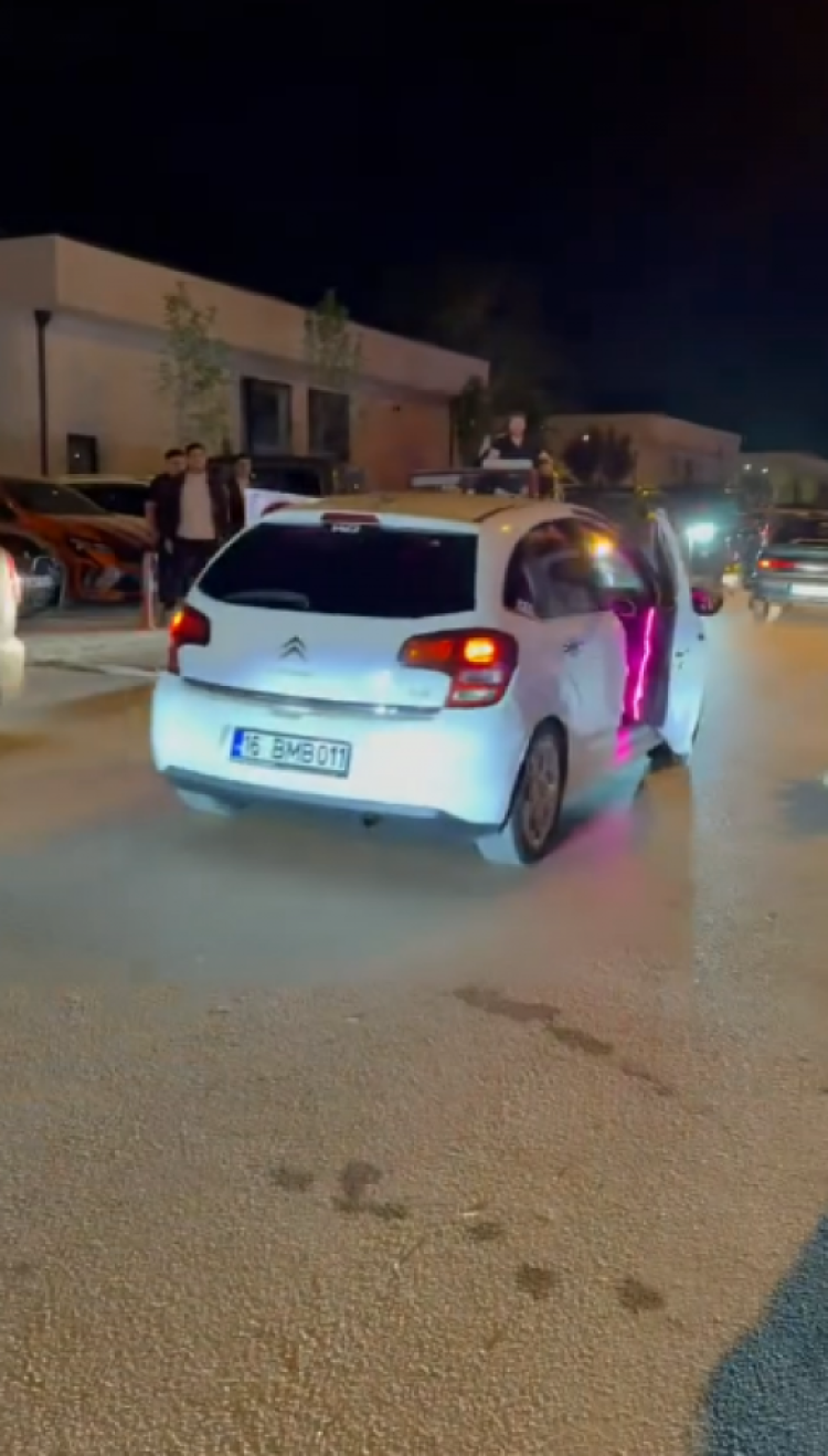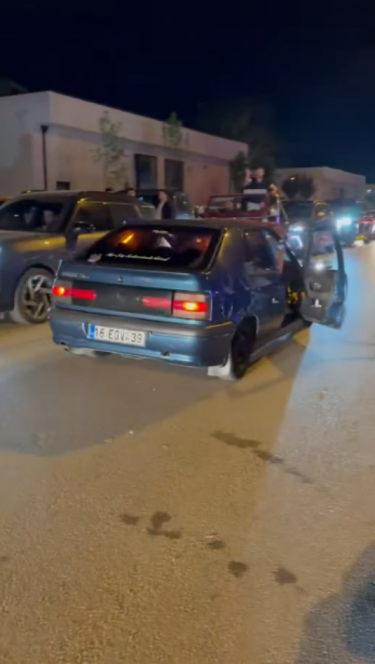 16 BMB 011 ve 16 EGV 39 plakalı araçların sürücüleri, kapılarını açık bırakıp son ses müzikle trafikte ilerlemeye devam etti.