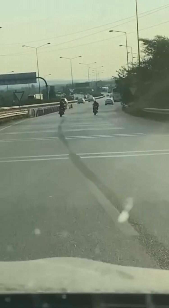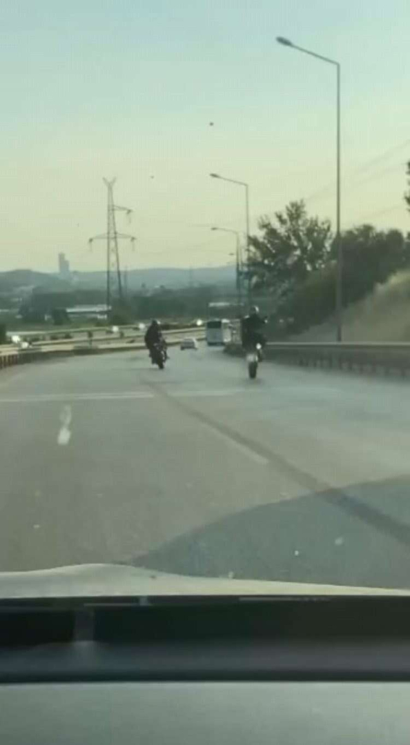 Bursa'da motosikletli gençlerin ölüme davetiye çıkartarak gitmesi izleyenleri korkuttu.