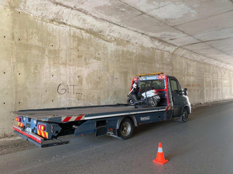 Yapılan denetimlerde trafikte seyretmesi kural dışı olan motosikletlere el konularak çekici yardımı ile otoparka çekildi.
