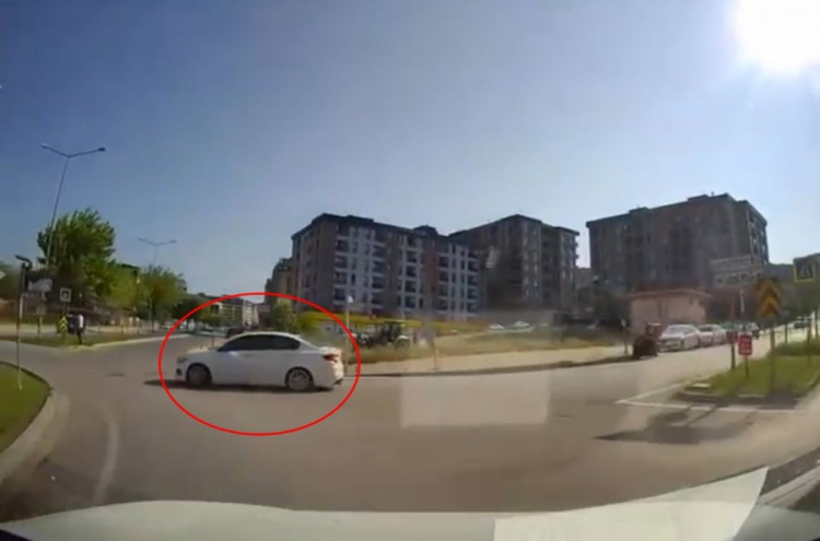 Bursa'da, yanlış yolda olduğunu fark eden otomobil sürücüsü, gideceği istikametteki yola, drift atıp dönüş yaparak girdi. O anlar, başka bir aracın kamerasına yansıdı.