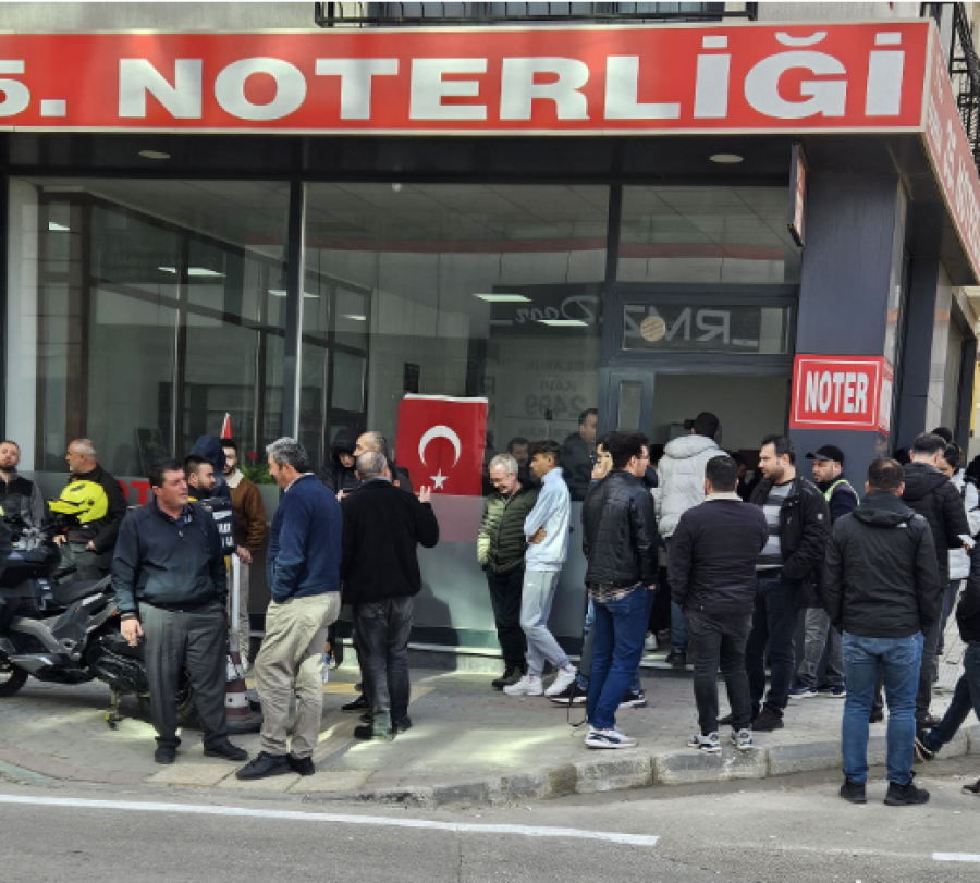Sabahın erken saatlerinde sıraya giren vatandaşlar noterlik önünde yoğunluğa neden oldu.