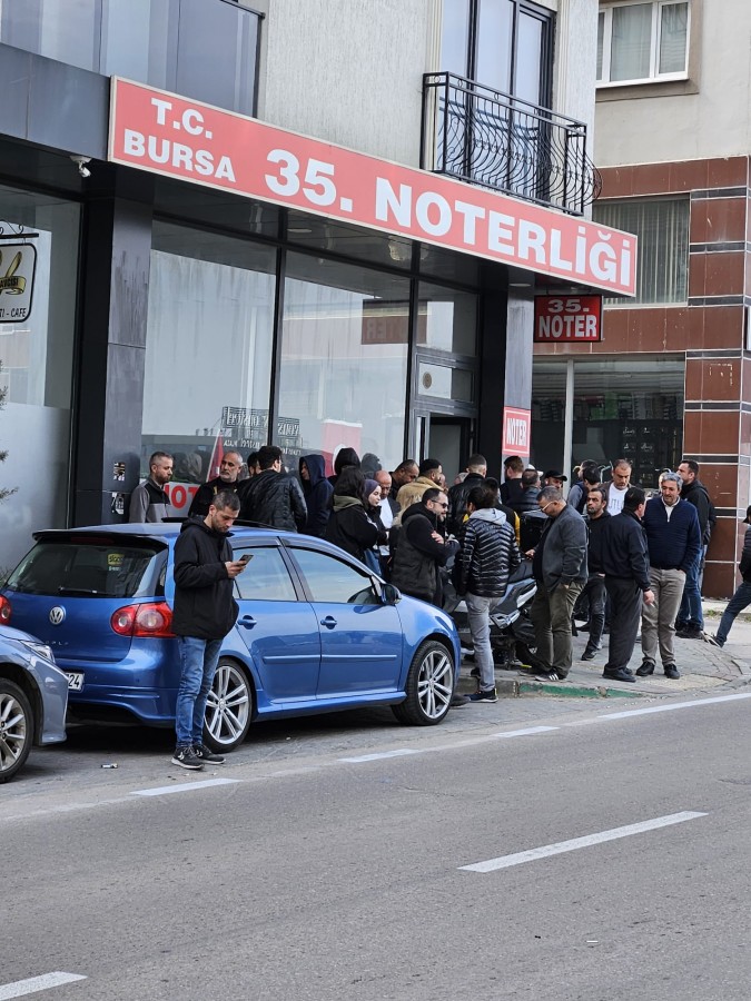 Bursa'da noterde işlemlerini tamamlamak isteyen vatandaşlar yoğunluk oluşturdu.