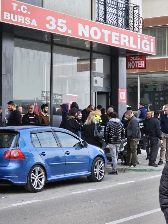 Bursa merkezde hafta sonu 2 nöbetçi noter bulunuyor. Nilüfer ilçesi Beşevler mahallesinde bulunan 35. noterlikte işlemlerini tamamlamak isteyen vatandaşlar uzun kuyruk oluşturdu.