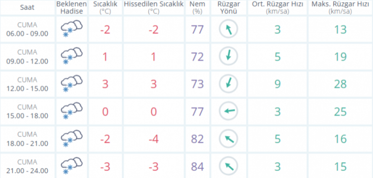 Akşam saatlerinde termometreler -2 derece seviyelerine düşmesi bekleniyor. Hissedilen sıcaklık -4 derece seviyelerinde seyrediyor.
