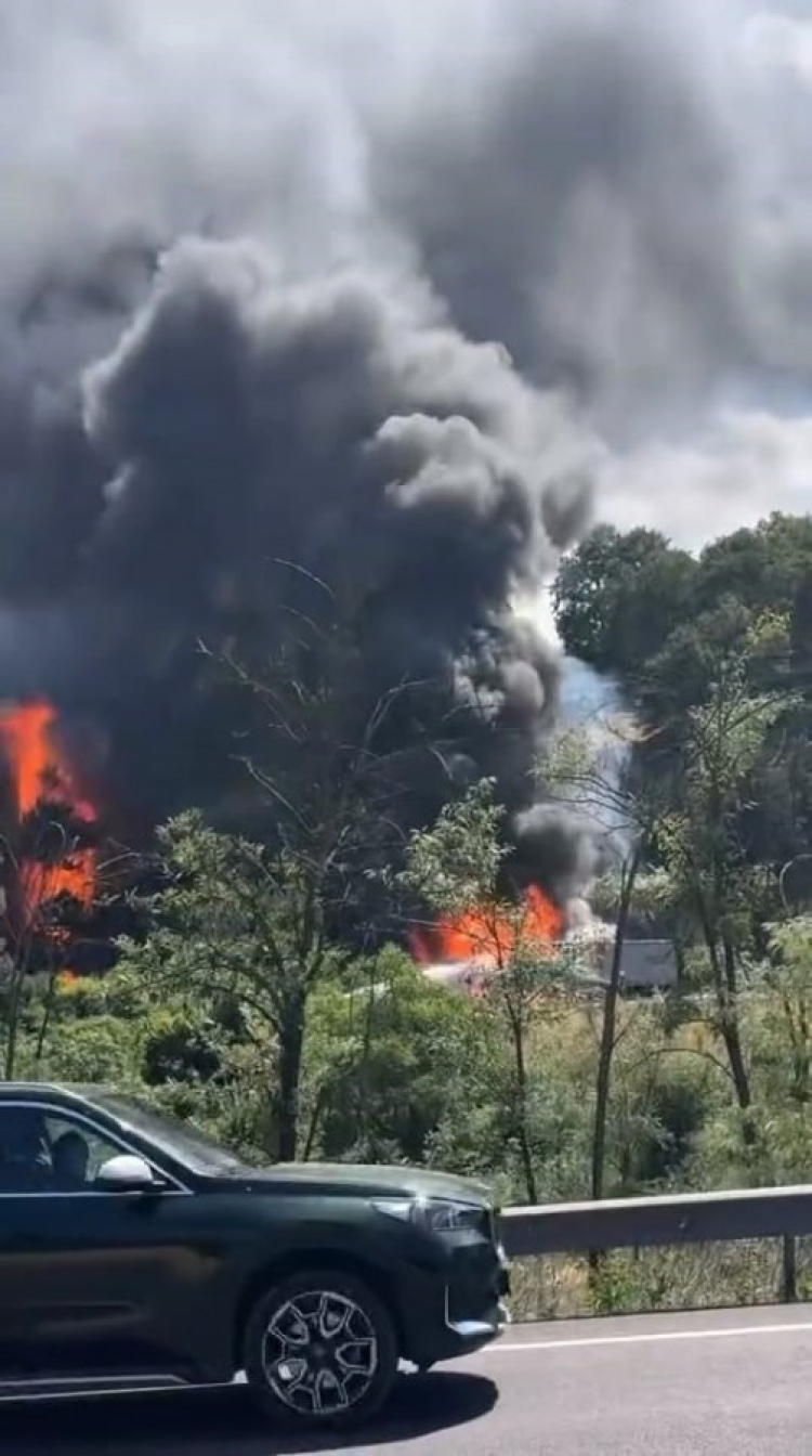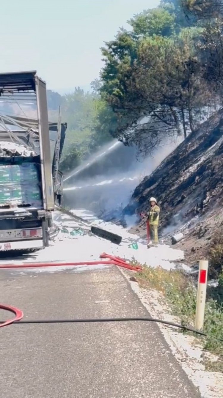 Kısa sürede büyüyen yangın, tırı tamamen sardı. Alevler çevredeki ormanlık alana da sıçrarken, olay yerine çok sayıda itfaiye ekibi sevk edildi. Tırdaki yangın ekiplerin müdahalesiyle kontrol altına alınırken, ormanlık alandaki yangın ise yaklaşık yarım saatlik yoğun çalışmanın ardından söndürüldü.