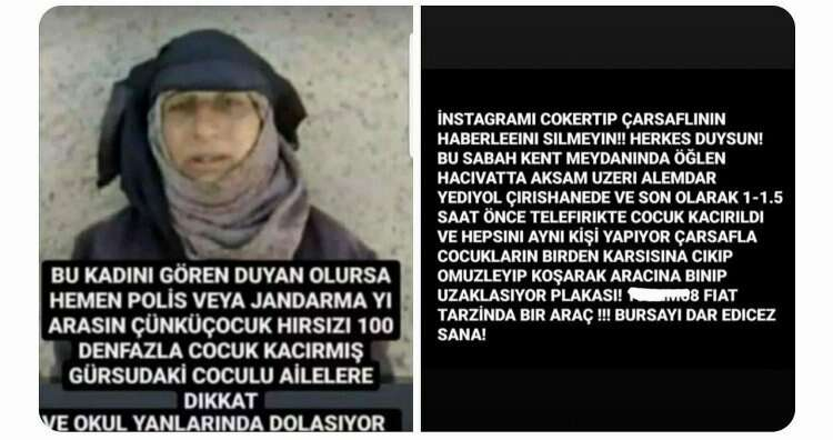 Bursa'da sosyal medya hesaplarından yapılan, çarşaflı kadın kılığındaki organ mafyasının çocuklarını kaçırdığı yönünde paylaşımlar asılsız çıktı.