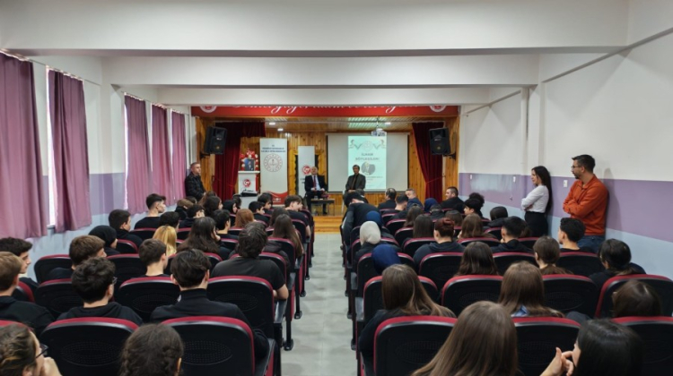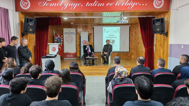 15 Temmuz Şehitler Anadolu Lisesinde gerçekleşen programda Kaymakam Karamehmetoğlu, kendi yaşam öyküsünden kesitler paylaşarak öğrencilerle sohbet etti.