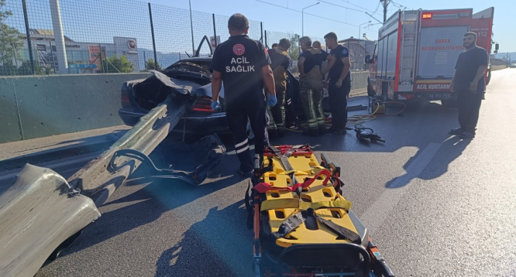 Bursa'nın Yıldırım ilçesinde otomobilin metro hattı duvarına çarptığı kazada, 1'i ağır, 2 kişi yaralandı.