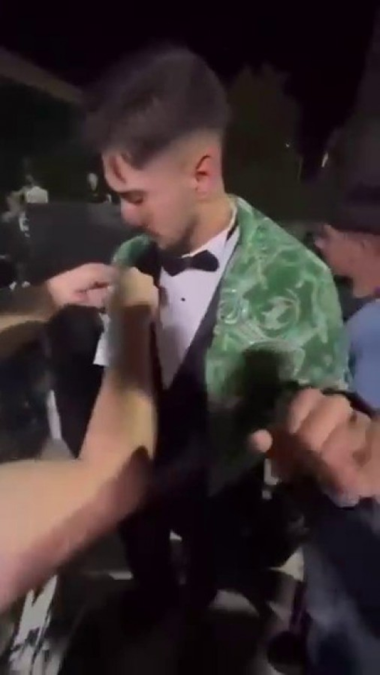 Salonda kısa süreli şaşkınlık yaşanırken, davetliler o anlar cep telefonlarıyla görüntüledi.