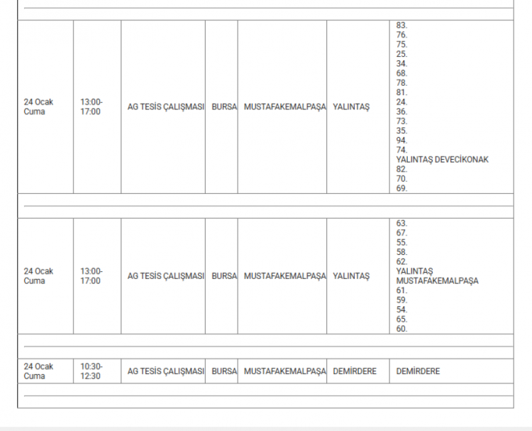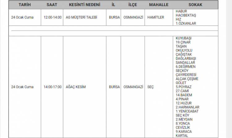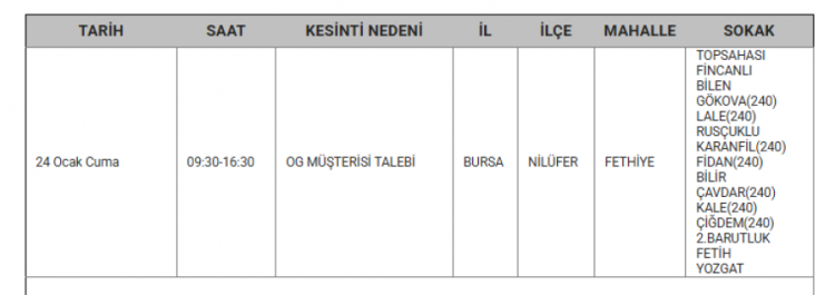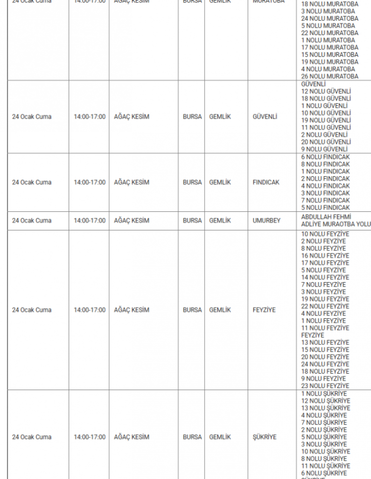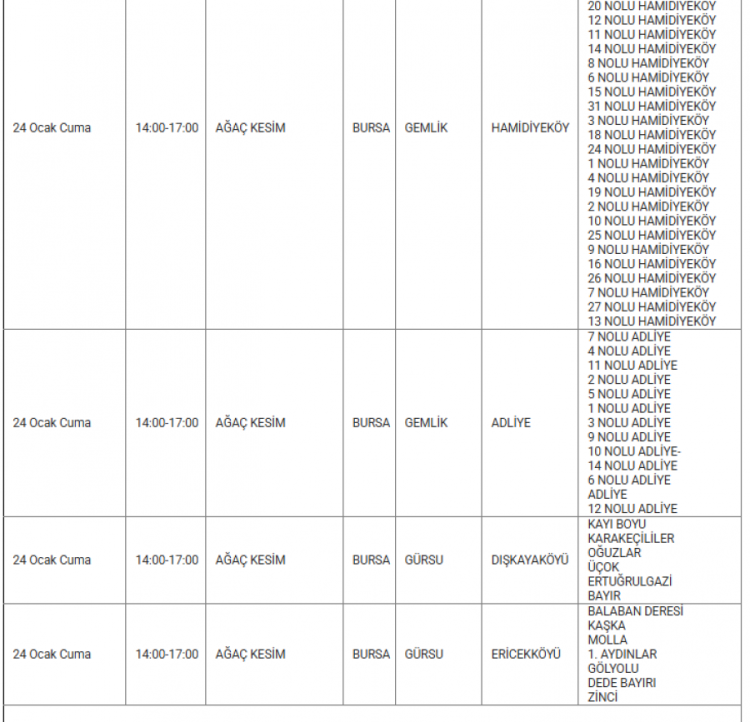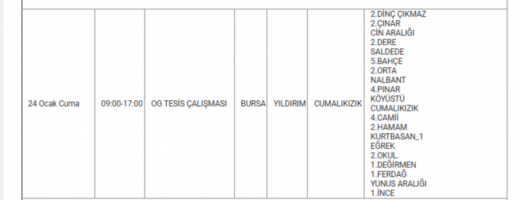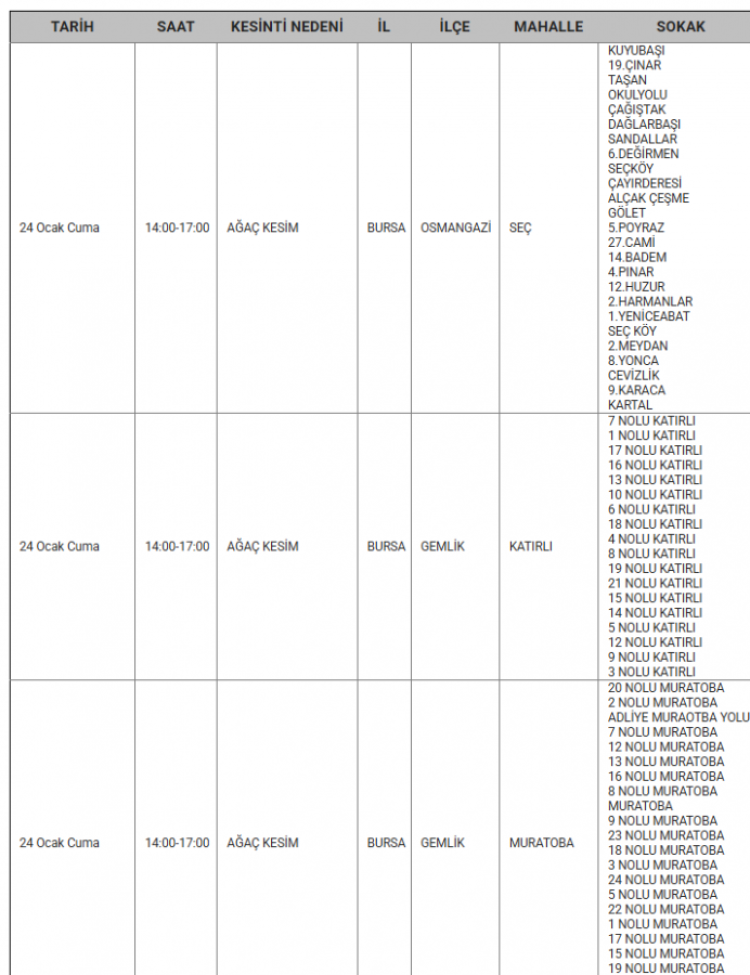 Bursa'da elektrikler ne zaman kesilecek? Bursa'da elektrik kesintisi var mı? Ne zaman? Bursa'da hangi mahallelerde kesinti olacak? soruları vatandaşlar tarafından yanıt arıyor... Uludağ Elektrik Dağıtım A.Ş (UEDAŞ) yapılacak planlı elektrik kesintisi programını duyurdu. Yapılan duyuruya göre; Gürsu, Gemlik, İznik, Mustafakemalpaşa, Nilüfer, Orhangazi, Osmangazi, Yıldırım ilçesinde elektrik kesintileri yapılacak. İşte 24 Ocak elektrik kesinti haritası...