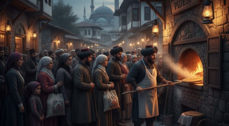 Ramazan pidesi, o dönemlerde de iftar sofralarının vazgeçilmeziydi. Fırınların önünde uzun kuyruklar oluşur, pideler genellikle susamlı ve bugünkünden daha kalın hazırlanırdı. Fırından çıkan pide kokusu, mahalle aralarında Ramazan'ın geldiğini hissettirirdi.