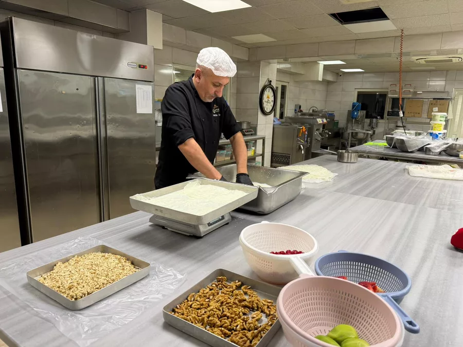 Alt kata iki, üst kata dört yaprak yerleştirdiklerini söyleyen Taşçı, iç malzemenin ise tamamen tercihe bağlı olduğunu dile getirdi. "Meyve koyan da var, fıstık, fındık kullanan da var. Ama en çok ceviz yakışıyor" dedi.