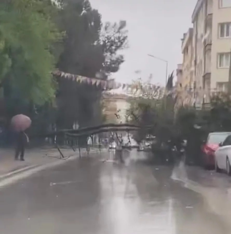 Bursa genelinde etkili olan yağış ve rüzgarlı hava yaşamı olumsuz etkilemeye devam ediyor. Özellikle açık alanlarda etkisini artıran kuvvetli rüzgar, Nilüfer ilçesine bağlı Fethiye Çamlık Mahallesi'nde bir ağacın devrilmesine neden oldu.