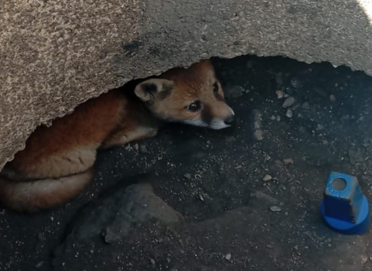 BUSKİ ekiplerinin çalışması ile mahsur kaldığı yerden kurtarılan çakal yavrusu daha sonra yeniden doğaya salındı.