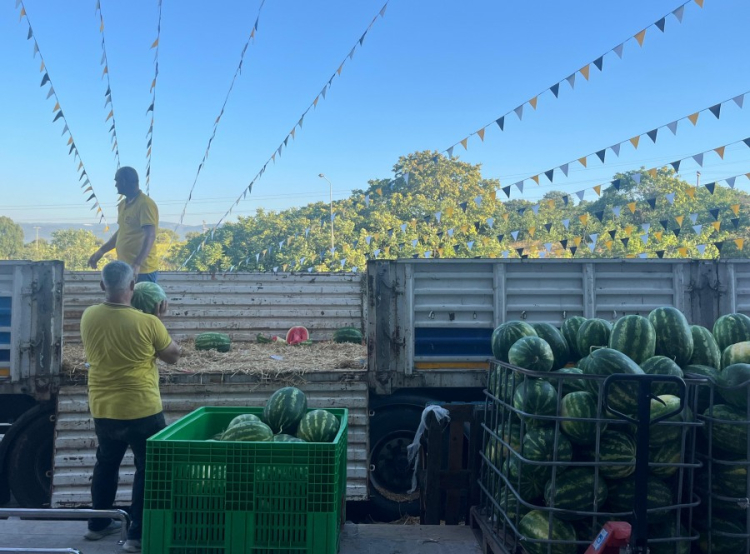 Normal şartlarda kilosu 15 liranın altında satılmayan karpuzun o marketteki fiyatı 5 lira olunca, insanlar adeta karpuz alabilmek için market araçlarını doldurdu.