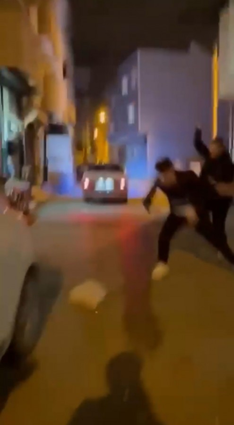 Gruplar arasında çıkan sözlü tartışma, kısa sürede kavgaya döndü. Sokağın resmen boks ringine döndüğü kavga, saniye saniye amatör kamera ile kaydedildi.