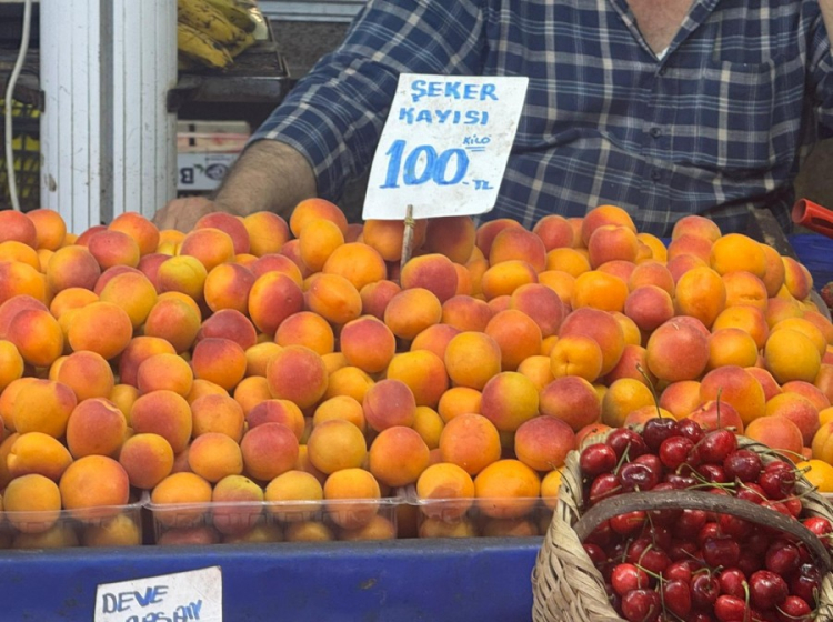 Özellikle şeker kayısı ve can eriğin fiyatı dikkat çekti. Tezgâhlarda kayısı 100 TL'den, can erik ise tam 180 TL'den satışa sunuldu.