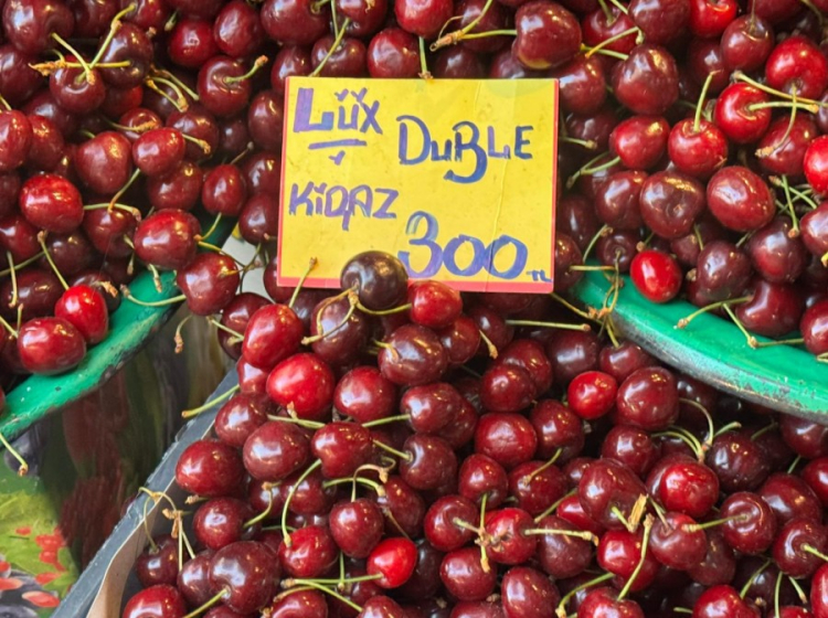 Yazın en sevilen meyvelerden olan çilek 140 TL iken, kiraz 300 TL, şeftali ise 150 TL'den tezgahlarda yer aldı.