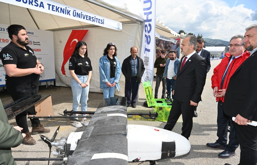 Bursa Büyükşehir Belediye Başkanı Alinur Aktaş, Yunuseli Havaalanında teknolojide yarışan gençleri atölyelerinde ziyaret etti. Çalışmaları hakkında gençlerden bilgi alan ve onlara çeşitli hediyeler veren Başkan Aktaş, "Milli teknoloji hamlesi kapsamında yapılan çalışmalar ile ülkemizde her alanda yerli ve milli üretim artıyor. İHA teknolojisinde ise ülkemiz, dünyadaki en başarılı birkaç ülkeden biri hâline geldi. Bu başarı, ülkemizin gururu olduğu kadar aynı zamanda bizlerin sorumluluğunu da arttırıyor. Bu yıl yarışmaya geçen yıla oranla yüzde 86 artışla 1228 takımın başvurması gençlerimizin de teknolojiye olan ilgisini gösteriyor. Tüm yarışmacılarımızı yürekten kutluyorum. Bursa Büyükşehir Belediyesi olarak bu tür etkinlikleri hep destekledik, desteklemeye de devam edeceğiz. Zira yaşadığımız çağı yakalamak için bilim temelli bir bakış açısı geliştirmemiz gerektiğini düşünüyorum. Geçmişimizden güç alıp geleceğimizi, çağın gereklerine göre şekillendirmeliyiz" diye konuştu.