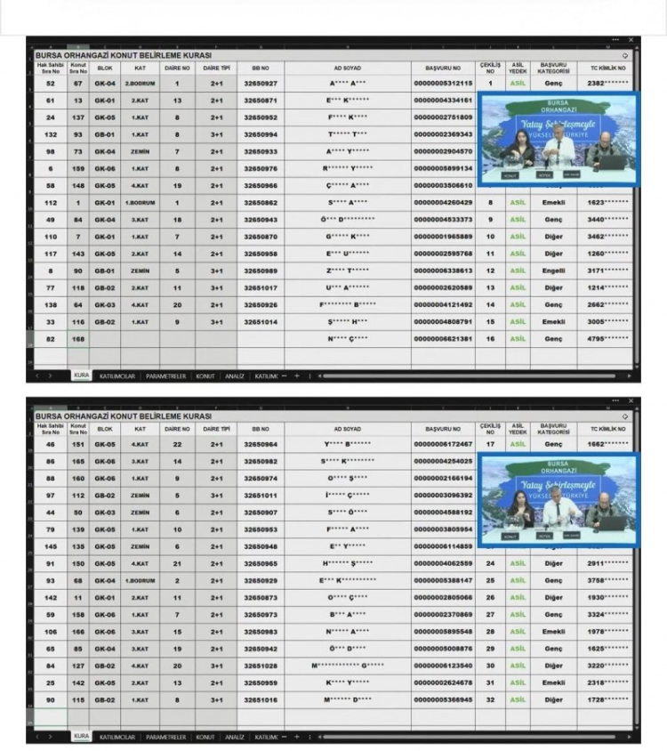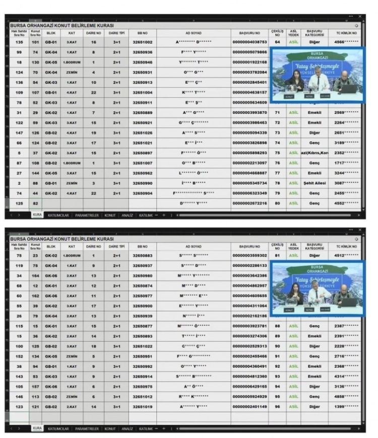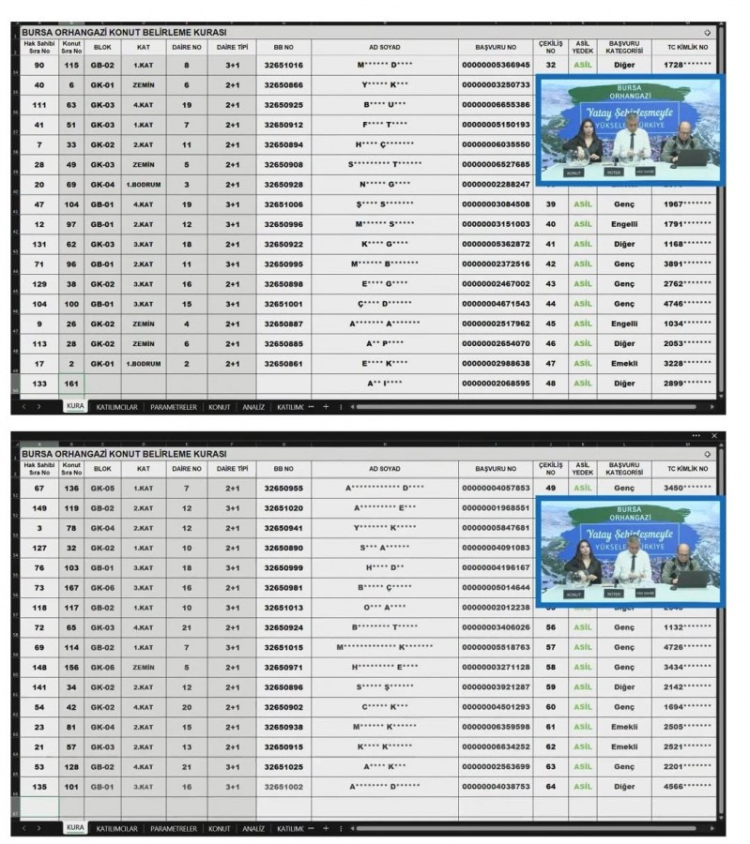 Bursa'nın Orhangazi ilçesi Hamzalı mahallesi yolu üzerinde yapımı devam eden Toki 5. etap konutlarının kura çekimi bugün TOKİ konut idaresi tarafından yapılan canlı yayın ile belirlendi.