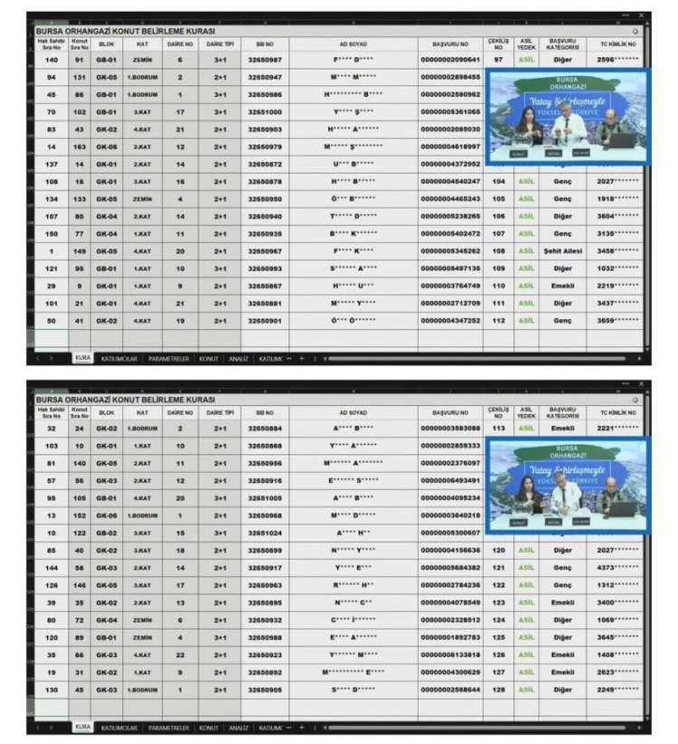 Buna göre (TOKİ) youtube kanalında canlı yayında açıklanan konutlara daha önceden belirlenen 152 hak sahibi kura çekimi ile yerleştirilmiş oldu.