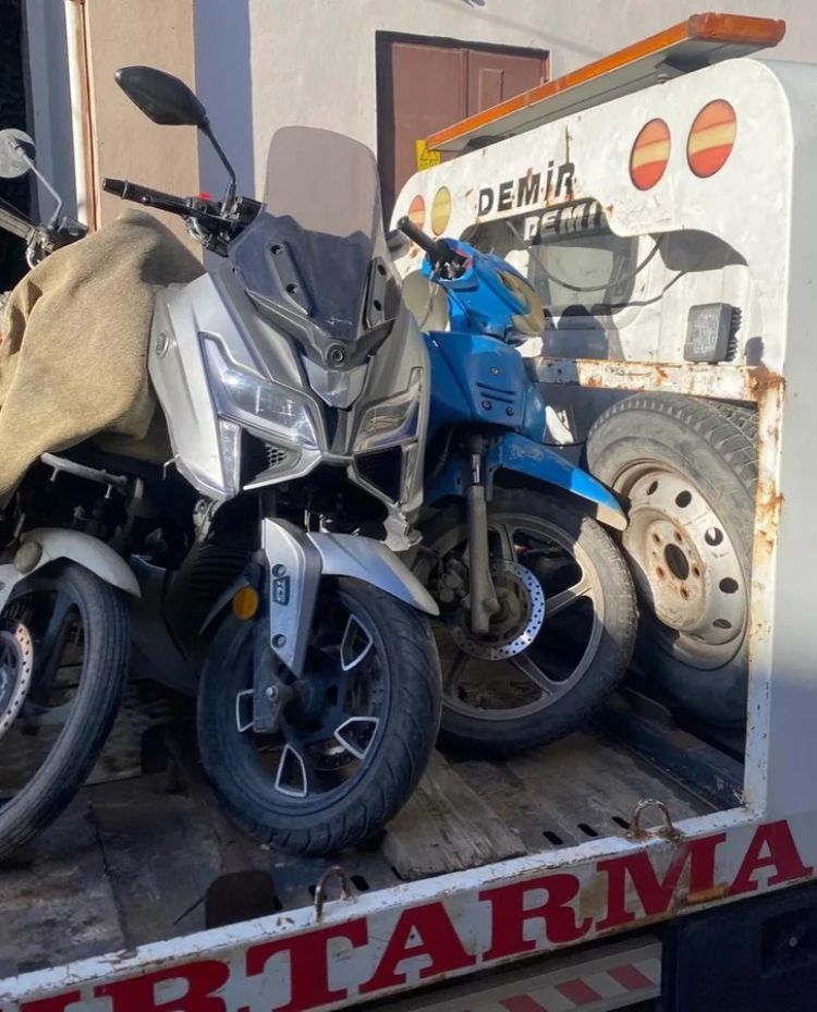 Denetimler sırasında yönetmeliğe aykırı olduğu tespit edilen, modifiyeli, abartı egzozlu ve plaka görünürlüğü engellenmiş çok sayıda motosiklet tek tek durduruldu.