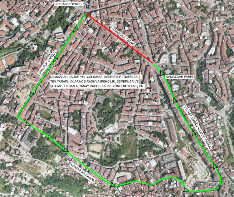 Bursa Büyükşehir Belediyesi Ulaşım Dairesi Başkanlığı, Yol Bakım ve Onarım Şube Müdürlüğü tarafından 8 Mart 2026 PAZAR Günü Yıldırım İlçesi Namazgah Caddesinde 6 noktada yol kaplamasında meydana gelen bozulmalar nedeniyle asfalt bakım ve onarım çalışmaları yapılacak olup sürücülerin alternatif güzergahları kullanması ve Namazgah Caddesi boyunca parklanma yapılmaması gerekmektedir.
