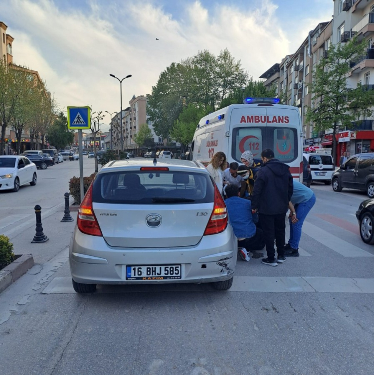 Bursa'nın İnegöl ilçesinde, yaya geçidinde yayaya yol vermek için duran otomobile arkadan çarpan motosikletin sürücüsü yaralandı. Kaza, başka bir otomobilin araç kamerasına yansıdı.