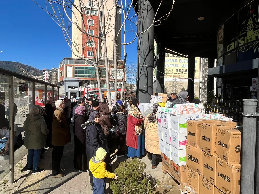 Bursa'nın Osmangazi ilçesinde ucuz fiyatlı ürünlerin satıldığı bir mağaza önünde uzun kuyruklar oluştu. Ev eşyalarının satışa sunulduğu mağaza önünde sabahın erken saatlerinden itibaren toplanan vatandaşlar, uygun fiyatlı ürün alabilmek için dakikalarca sıra bekledi.