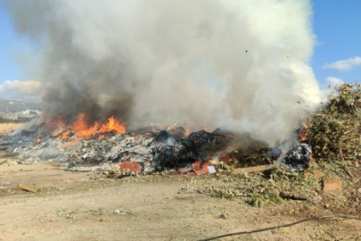 Bugün öğle saatlerinde çıkan yangında, depolanan çeşitli atıklar alevlere teslim oldu.