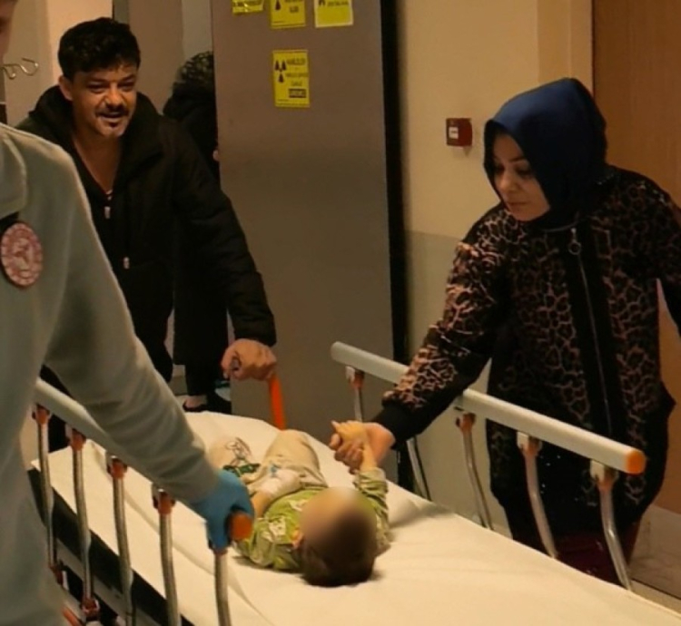 Yapılan tetkiklerde kafa tasında kırık olduğu öğrenilen çocuk ambulansla Bursa Yüksek İhtisas Eğitim ve araştırma hastanesine sevk edildi. Baba U.Ü., sevk sırasında sedyede yatan oğlunu alnından öperek moral verdi. Çocuğun sağlık durumunun ciddiyetini koruduğu öğrenildi.