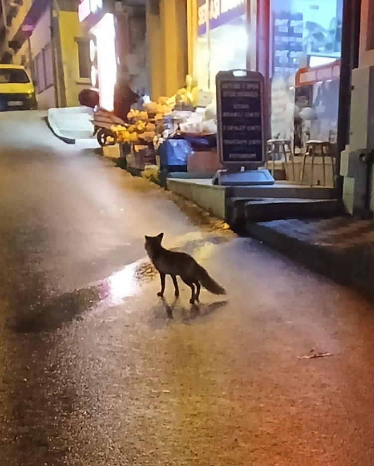 Tilkinin bir süre çevrede dolaştıktan sonra gözden kaybolduğu görüldü. O anlar cep telefonu kameralarına yansıdı.