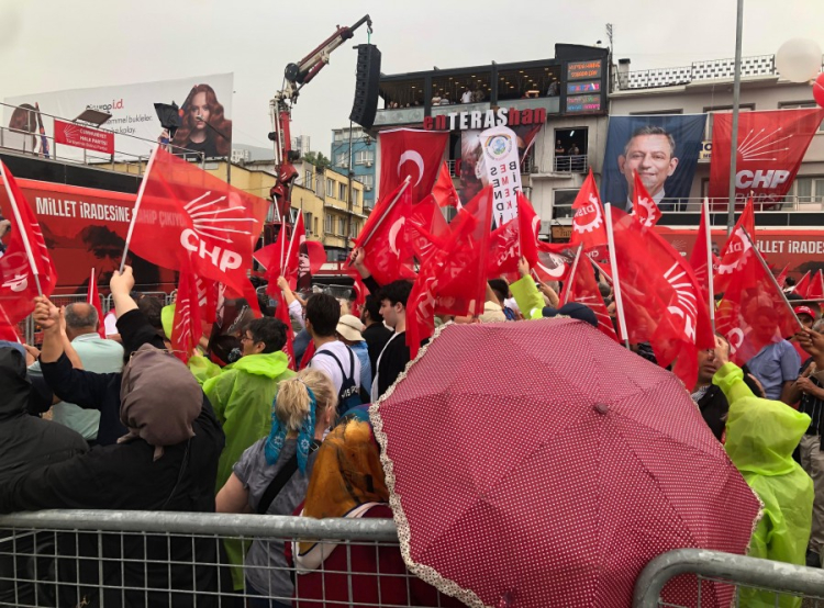 CHP Genel Başkanı Özgür Özel'in Bursa mitingi öncesi yağan yağmur ve fırtına vatandaşlara engel olmadı.