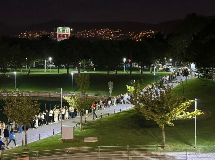 Merinos Park'ta verilecek konser için metrelerce kuyruk oluştu.