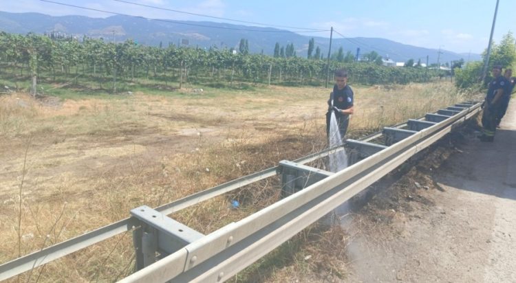 Otomobilde çıkan yangın vatandaşların müdahalesi ile tüm aracı sarmadan söndürüldü, otlardaki alevleri ise itfaiye ekipleri büyümeden kontrol altına aldı.