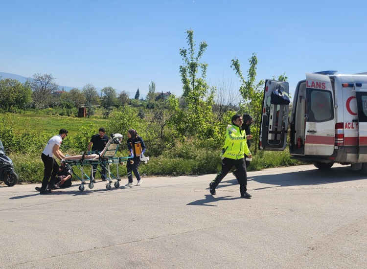 Bursa'nın Orhangazi ilçesinde meydana gelen trafik kazasında, kamyonet ile motosiklet çarpıştı. Kazada motosiklet üzerinden yere savrulan sürücü ve arkasında bulunan eşi yaralandı.